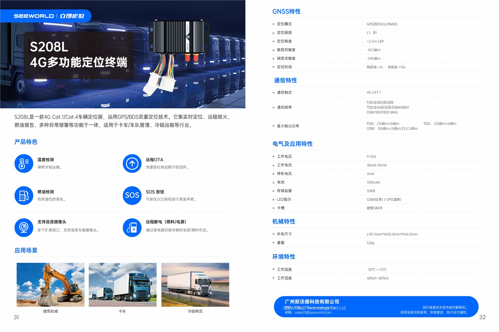 S208L是一款4G Cat.1/Cat.4車輛定位器,運用GPS/BDS雙重定位技術。它集實時定位、遠程熄火燃油報告、多種異常報警等功能于一體,適用于卡車/車隊管理、冷鏈運輸等行業。